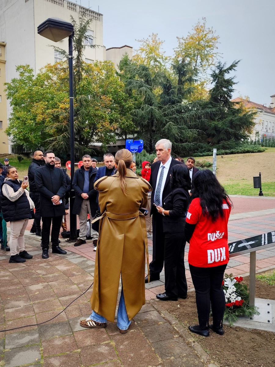 Министар за људска и мањинска права и друштвени дијалог Демо Бериша присуствовао је комеморативном скупу поводом постављања спомен обележја Душану Јовановићу, дечаку ромске националности који је био жртва расно мотивисаног убиства 1997. године.